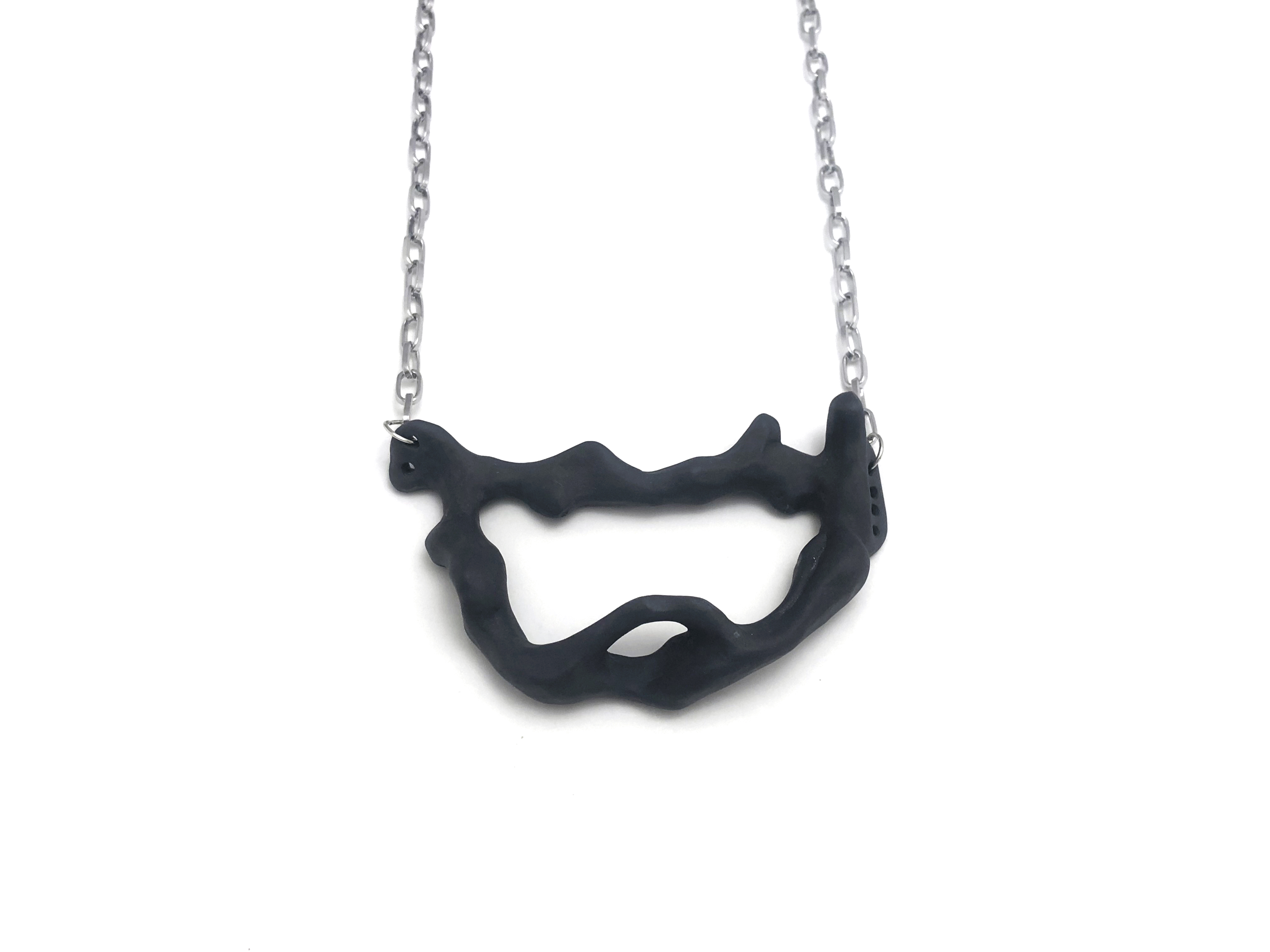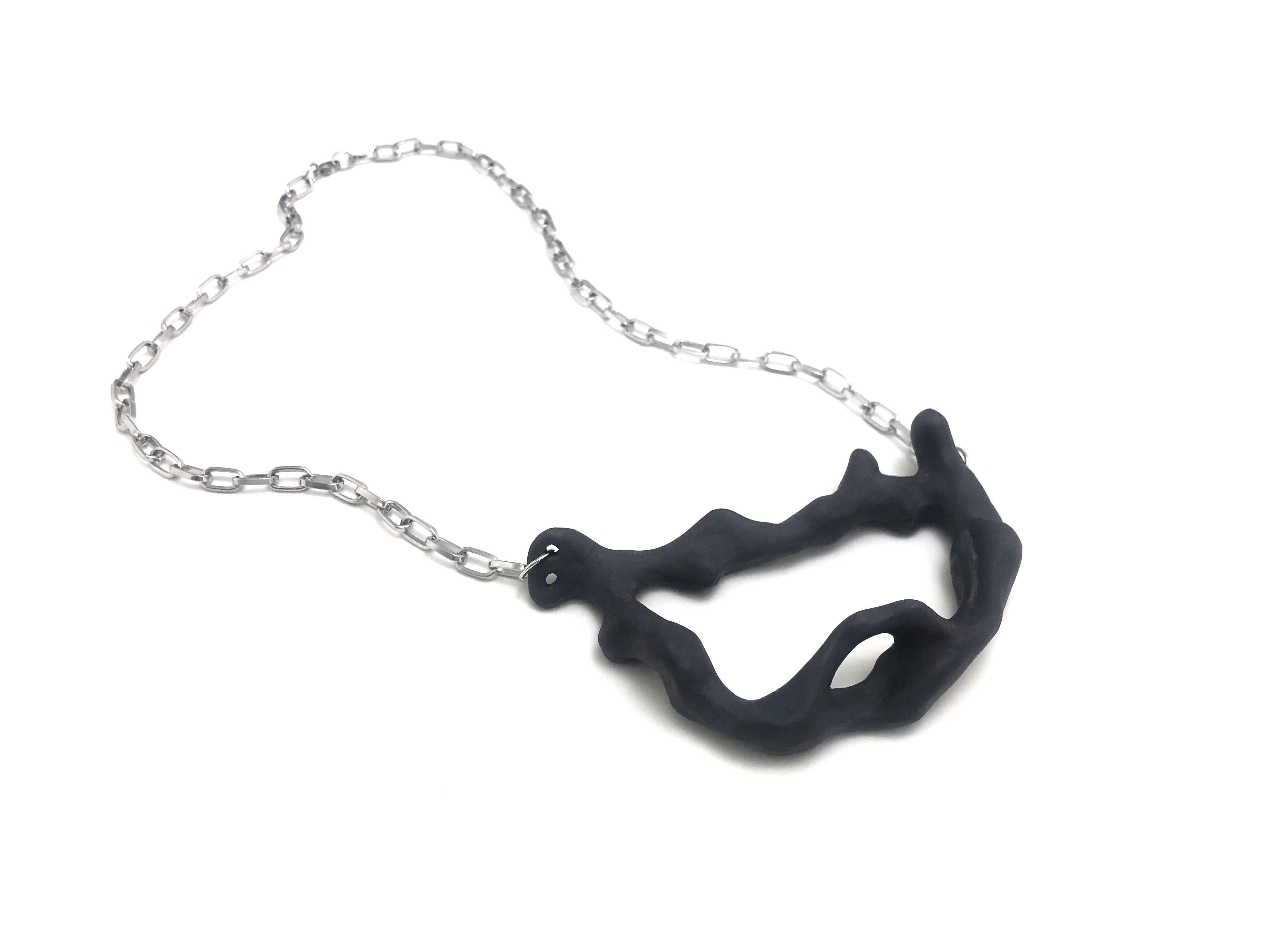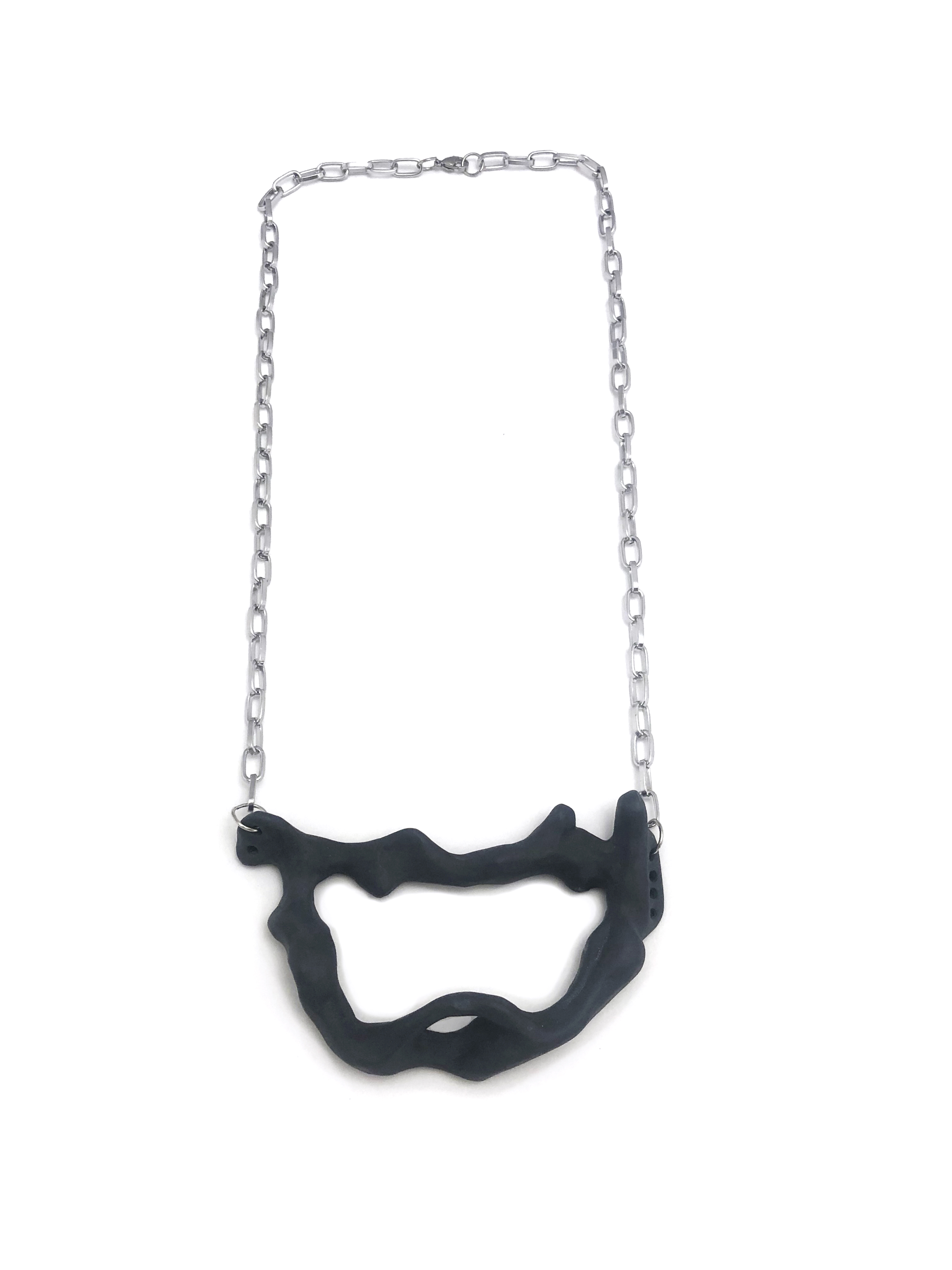 Γλυπτό κολιέ με μαύρη πορσελάνη σε αλυσίδα αλουμινίου.